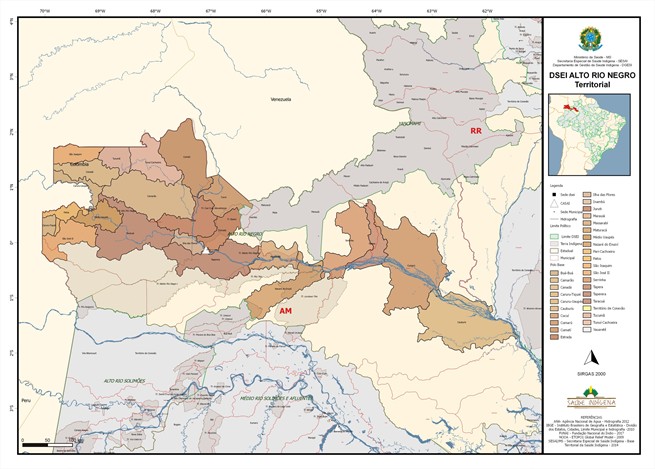 O Distrito Sanitário Especial de Saúde Indígena Alto Rio Negro tem atualmente a população de 29.102 (vinte e nove mil cento e dois) indígenas, em 451 (quatrocentas e cinquenta e uma) aldeias, dispersas em 03 (três) municípios, noestado doAmazonas,com acesso que utiliza os modais terrestre, aéreo e fluvial, totalizando uma extensão territorial de294.502,64 km²;